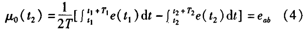 冷卻水流量計一般都采用工頻交流電源供電,其電源電壓的幅值和頻率的變化都會給冷卻水流量計帶來電源性干擾噪聲。對電源電壓的幅值變化,因采用多級集成穩(wěn)壓,一般而言電源電壓的幅值變化對電磁流量的測量精度影響不大。當(dāng)電源電壓的頻率波動時,雖然其波動范圍有限,但對冷卻水流量計測量精度影響較大。為了解決工頻干擾問題,實現(xiàn)對流體流速感應(yīng)電勢e柚信號的準(zhǔn)確測量,需利用以下基本關(guān)系:①勵磁周期為工頻周期的整數(shù)倍,即勵磁頻率為50/nHz(n為偶數(shù));②正負勵磁下的同相位采樣。圖2是對應(yīng)低頻矩形波勵磁形式下的典型電勢信號形式,按上述關(guān)系在一個勵磁周期下,若假設(shè)t。和t:點為工頻干擾的等效干擾點,且采樣寬度T=T1=T2,則e –ab的基本算式為:,