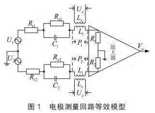 提出在硬件電路上加入模擬開關(guān), 干擾尖峰到來時斷開模擬開關(guān)避免干擾進(jìn)入后級電路,尖峰過去重新打開模擬開關(guān);K.Saito 等提出漂移校正法,先以高勵磁頻率進(jìn)行勵磁,在勵磁過程中插入低勵磁頻率提取用于漂移校正的非固定微分噪聲分量,但在插入的低勵磁頻率段漿液噪聲較大且很難將漿液噪聲與流量信號分離,此時的校正因子非單純的非固定噪聲分量,改進(jìn)措施是長時間取平均值得到穩(wěn)定因子。 傳統(tǒng)方法是同步采樣保持法,即在磁場穩(wěn)定階段采樣。 其他消除干擾的方法有設(shè)置干擾補(bǔ)償機(jī)構(gòu)、控制勵磁電流變化率減小干擾幅值、矩形波代替梯形波、希爾伯特黃變換結(jié)合傅里葉變換和程控增益技術(shù)等。經(jīng)上述對現(xiàn)有的文獻(xiàn)分析與總結(jié)可知, 當(dāng)前消除微分噪聲主要從信號處理方面入手,并未對影響噪聲的因素加以研究。 本文建立電極測量回路等效模型,給出仿真模型搭建、參數(shù)取值和仿真結(jié)果分析。