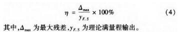 本文采用*小二乘法進(jìn)行線性度評(píng)定,即擬合直線為*小二乘直線。*小二乘直線保證了傳感器至極輸出的平均值對(duì)它的偏差的平方和為*小,即可以保證擬合直線得到的結(jié)果與實(shí)測結(jié)果之間的偏差很小,更具可靠性。根據(jù)定義,線性度即是校準(zhǔn)曲線對(duì)這條*小二乘擬合直線的偏離程度。