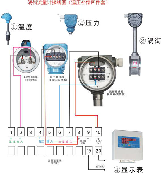 3、溫壓補償一體型帶有溫度、壓力傳感器,用于氣體流量測量可直接測量出氣體介質(zhì)的溫度和壓力,從而顯示氣體的標(biāo)況體積流量。
