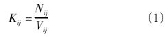 式中:Kij為*i檢定點*j次檢定的儀表系數(shù),L-1或(m3)-1,其中,i=1,2,3,…,m,m為檢定點數(shù),m≥3,j=1,2,3,…,n,n為檢定次數(shù),n≥3;Nij為*i檢定點*j次檢定時流量計顯示儀表測得的脈沖數(shù);Vij為*i檢定點*j次檢定時標(biāo)準(zhǔn)裝置測得的實際流量,L或m3。