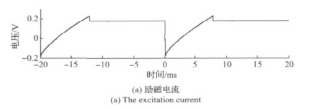 實驗結(jié)果表明,高壓源向低壓源切換后,三端穩(wěn)壓器的工作特性致使的電流波動和低壓源供電情況下的恒流控制,會大幅延長勵磁電流的穩(wěn)態(tài)響應(yīng)時間。圖8所示勵磁電流約在17ms左右進入穩(wěn)態(tài),圖9所示勵磁電流的穩(wěn)態(tài)響應(yīng)時間約為12ms。這表明,在采用三端穩(wěn)壓器搭建恒流控制電路的情況下,電流旁路電路能有效克服三端穩(wěn)壓器工作特性的影響,并能方便的實現(xiàn)電流超調(diào),加快勵磁電流的響應(yīng)速度。