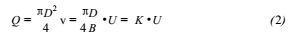 式(1)說(shuō)明,導(dǎo)體在磁場(chǎng)內(nèi)作切割磁力線運(yùn)動(dòng),導(dǎo)體兩端產(chǎn)生的感應(yīng)電動(dòng)勢(shì)的大小與磁感應(yīng)強(qiáng)度B成正比,與導(dǎo)體的長(zhǎng)度D成正比,與導(dǎo)體運(yùn)動(dòng)的速度v成正比。由式(2)可知液體的體積流量與感應(yīng)電動(dòng)勢(shì)成正比,這就是印染廢水流量計(jì)的設(shè)計(jì)原理。