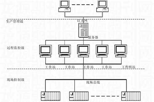 針對鎢礦選廠生產(chǎn)的實(shí)際需求,這里應(yīng)用相應(yīng)的自動化技術(shù),對自動化監(jiān)控系統(tǒng)進(jìn)行了設(shè)計。在系統(tǒng)設(shè)計中,遵循“方案合理、技術(shù)先進(jìn)、運(yùn)行可靠、操作方便”的原則,系統(tǒng)整體采用集散控制系統(tǒng),基于現(xiàn)場總線通訊,其整體網(wǎng)絡(luò)構(gòu)架如下: