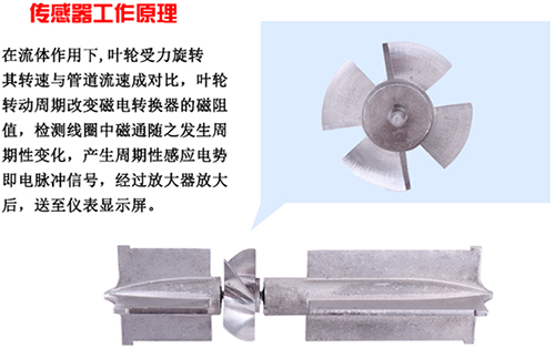 渦輪流量計采用渦輪進行測量。它先將流速轉換為渦輪的轉速,再將轉速轉換成與流量成正比的電信號。這種流量計用于檢測瞬時流量和總的積算流量,其輸出信號為頻率,易于數(shù)字化。圖中感應線圈和永久磁鐵一起固定在殼體上。當鐵磁性渦輪葉片經(jīng)過磁鐵時,磁路的磁阻發(fā)生變化,從而產(chǎn)生感應信號。信號經(jīng)放大器放大和整形,送到計數(shù)器或頻率計,顯示總的積算流量。同時將脈沖頻率經(jīng)過頻率-電壓轉換以指示瞬時流量。葉輪的轉速正比于流量,葉輪的轉數(shù)正比于流過的總量。渦輪流量計的輸出是頻率調制式信號,不僅提高了檢測電路的抗干擾性,而且簡化了流量檢測系統(tǒng)。它的量程比可達10:1,精度在±0.2%以內。慣性小而且尺寸小的流量計的時間常數(shù)可達0.01秒。