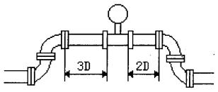 鍋爐蒸汽流量計由于其獨特的性能,一直受到人們重視,并己到了廣泛的應(yīng)用,但仍有兩個方面的問題困擾著人們,一是由于儀表上游管道阻流件的干擾,流場發(fā)生畸變,影響旋渦正常撥離。為了克服流場擾動,儀表前需要配裝較長直管道(一般為15~40倍的工藝管內(nèi)徑的長度),而在實際現(xiàn)場是很難滿足的。二是,鍋爐蒸汽流量計主要特點之一是量程寬,一般在10:1左右,應(yīng)該說這樣寬的測量范圍應(yīng)屬比較優(yōu)良的性能,但在實際工業(yè)應(yīng)用中,*大流量遠低于儀表的上限值,*小流量又往往會低于儀表的下限值,一些儀表經(jīng)常工作在下限流量附近,造成儀表的計量準確度下降,這時信號較弱,儀表的抗干擾能力也下降。為了測量小流量,人們往往采用內(nèi)腔形狀為園臺的傳統(tǒng)變徑管,經(jīng)過縮徑提高測量處的流速。使鍋爐蒸汽流量計工作在正常流速范圍內(nèi),但這種變徑方式,結(jié)構(gòu)尺寸大(一般長度為工藝管內(nèi)徑的3~5倍),同時,由于流體流經(jīng)變徑管,在變徑處產(chǎn)生大量旋轉(zhuǎn)流團,增大局部阻力損失,也使流場發(fā)生畸變。所以必須在變徑管與儀表之間加裝大于15倍工藝管內(nèi)徑長度的直管道進行整流,且增加了沿程阻力損失(如圖1所示),這種方法增加施工成本,也給加工、安裝帶來不便。