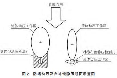 新智能分體式電磁流量計(jì)采用拋物面導(dǎo)向型結(jié)構(gòu)作為動(dòng)壓測點(diǎn),采用對(duì)稱自補(bǔ)償型式的靜壓測點(diǎn),可以有效地解決來流方向偏流時(shí)信號(hào)的穩(wěn)定采集,來流偏離管道軸線時(shí),可以維持輸出差壓基本不變,如圖2所示。