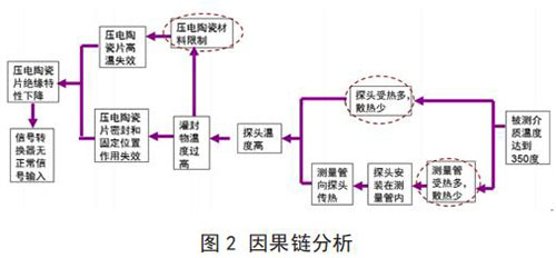 問(wèn)題關(guān)鍵點(diǎn):探頭安裝在測(cè)量管內(nèi),探頭與高溫介質(zhì)及測(cè)量管直接接觸,受熱量多,而使壓電陶瓷片失效。