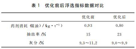氣體轉(zhuǎn)子流量計(jì)制造過程優(yōu)化設(shè)計(jì)完成后,在原選煤廠進(jìn)行為期三個(gè)月的工業(yè)試驗(yàn),并對(duì)優(yōu)化前后的浮選關(guān)鍵指標(biāo)參數(shù)進(jìn)行統(tǒng)計(jì)和分析。應(yīng)用情況數(shù)據(jù)表明,經(jīng)過優(yōu)化設(shè)計(jì)的浮選自動(dòng)控制系統(tǒng),各關(guān)鍵浮選指標(biāo)參數(shù)都有明顯提升,詳見表1