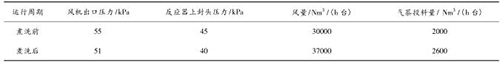 液體渦街流量計(jì)煮洗吹掃后,裝置運(yùn)行期間無燃爆事故,且裝置運(yùn)行的風(fēng)量明顯提高,系統(tǒng)阻力明顯降低,投料量增加?,F(xiàn)將煮洗前后的運(yùn)行數(shù)據(jù)對比如下: