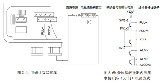 3.4.5 頻率(脈沖)、上下限報(bào)警、流向標(biāo)示等輸出均為集電極開(kāi)路的電平輸出信號(hào)。