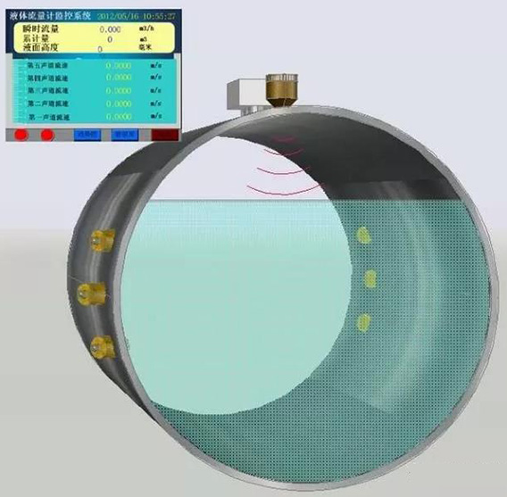 超聲波流量計的工作原理是,借助時差式測量原理,通過一對超聲波探頭發(fā)射信號穿過中間介質(zhì)到達另一側(cè)管壁,被另一個探頭接收到,另一側(cè)探頭同樣發(fā)射信號被*一個探頭接收到。在這個過程中,由于信號的輸送時間受介質(zhì)流速的影響,所以,存在一定的時間差?;诖?,超聲波流量計借助相關(guān)公式計算出了相應(yīng)的流量值。