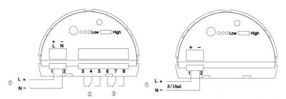 ①:電源輸入端①:電源輸入端/8/16mA信號(hào)輸出端