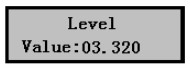 1)儀表上電,儀表進入測量,液晶顯示液位數(shù)值,如右圖,而實測液位為3.320m,下面介紹標(biāo)定方法。