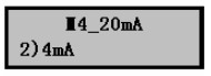 a) 按擊OK鍵,進入20mA參數(shù)設(shè)置菜單,液晶顯示如右圖。