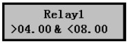 3) 按擊▼鍵可選擇其它繼電器,點OK鍵進入繼電器1設(shè)置界面,如右圖,界面中的公式表示繼電器1